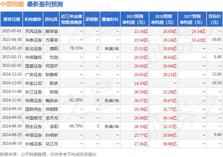 证券之星数据中心根据近三年发布的研报数据计算,华源证券戴铭余研究员团队对该股研究较为深入,近三年预测准确度均值高达82.29%,其预测2025年度归属净利润为盈利30.57亿,根据现价换算的预测PE为8.44。